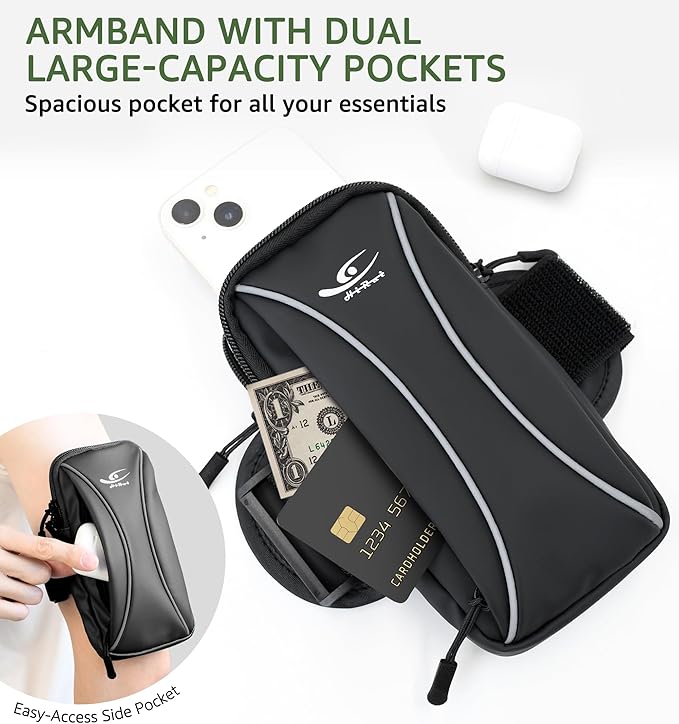 - Dual Large-Capacity Pockets: Carry all your essentials with ease thanks to the spacious dual-pocket design. Easily store your phone, credit cards, cash, and earbuds, so you’re always prepared on the go—whether you’re at the gym, cycling, or out for a run.