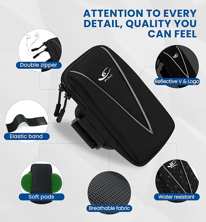 - Reflective & Water-Resistant for Safety: Stay safe on early morning or late-night runs thanks to the reflective ‘V’ strip and logo, providing high visibility in low light. The premium water-resistant fabric shields your gear from sweat and unexpected weather, keeping your phone and valuables dry and protected.