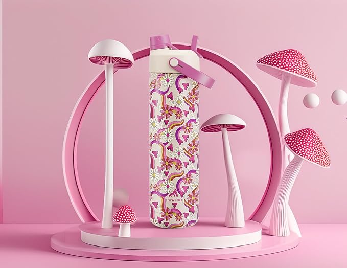 26 oz Insulated Water Bottle with 2-in-1 Straw and Spout Lid, Keep Cold 24H, Leak-Proof, Fits in Car Cup Holder, Stainless Steel Water Bottle for Sports, Travel, Gym, and School (Petal Path)
