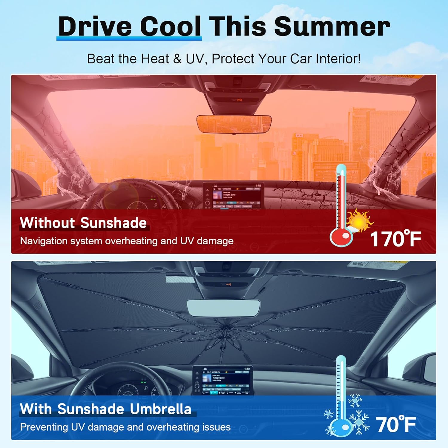 - 5. Portable & Universal Fit: Folding to umbrella size, easy to store and carry. Compatible with 2025 Kona/Crown/HR-V/Jerra/Niro/Seltos/Terrain/Frontier/Kicks/XC40/K4/Encore GX/Taos/Soul/Sonata/UX/Venue/Trailblazer/Corvette/Enlantra, it provides adjustable coverage and adapts to most windshields, with slight adjustments for a better fit