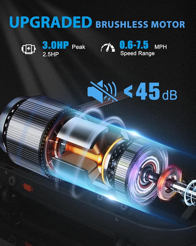 - Max.Speed 7.6MPH: 2.5 HP (3.0HP PEAK) motor can provide 0.6-7.6mph running speed to meet your different exercise needs. Store it under a table, bed, or sofa easily by transport wheels