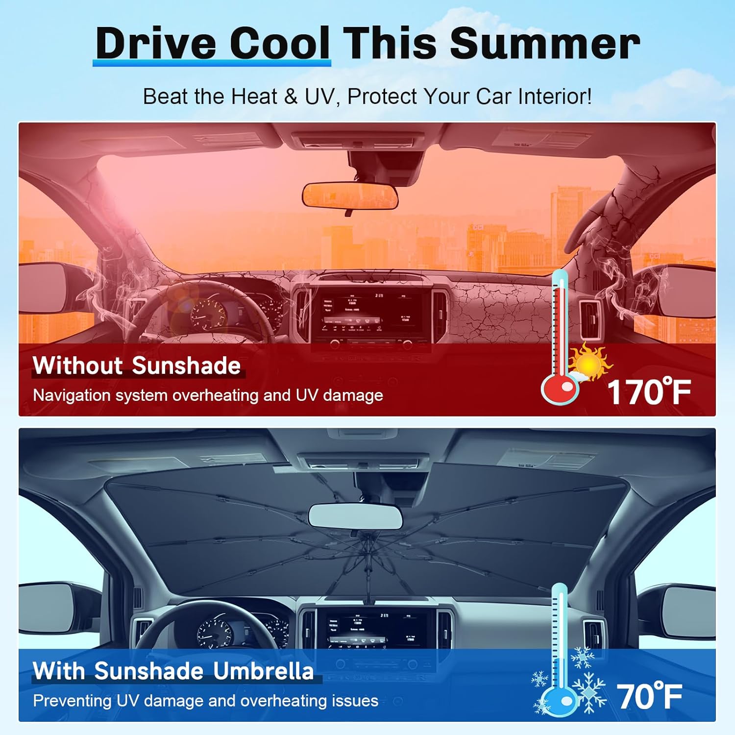 - 1. Sun & Heat Insulation: Windshield Umbrella Sunshade for 2022 2023 2024 2025 Nissan Frontier Accessories, 99.9% UV protection, upgraded wrinkle-resistant fabric reflects heat, keeps car cool. Protects interior from fading & cracking, ensuring comfort on hottest days