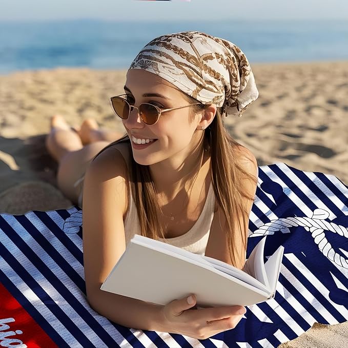 JML Personalized Beach Towel with Name, Custom Anchor Beach Towel, Customized Microfiber Pool Towel, Quick Dry & Absorbent Swim Towel for Adult,Anniversary, Birthday, Summer Holiday,Vacation