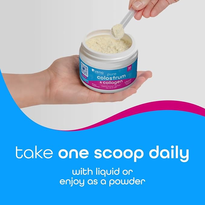 Zena Nutrition Bovine Colostrum & Collagen Powder Supplement for Gut Health, Immune Support, Digestion, Hair, Skin & Nails, Unflavored, Gluten & Sugar Free, 30 Servings
