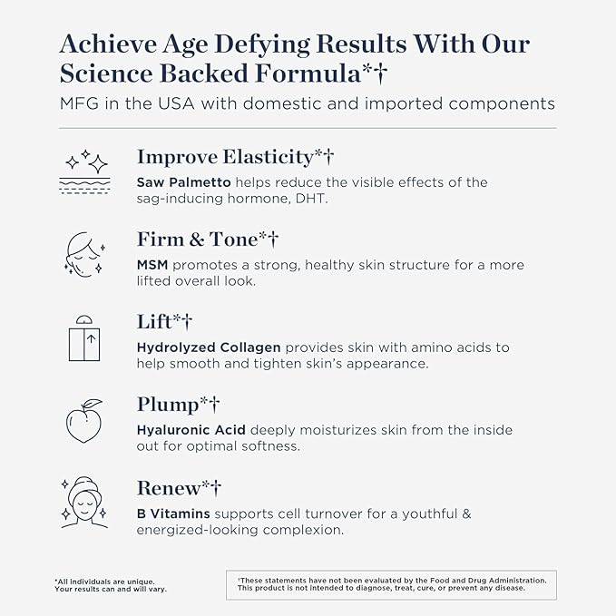 - ALL IN ONE: Our specially crafted and scientifically backed formula contains a precise and potent combination of “age-fighting” ingredients that help your entire body combat the common signs of aging, while energizing skin cells and supporting a healthy skin structure.