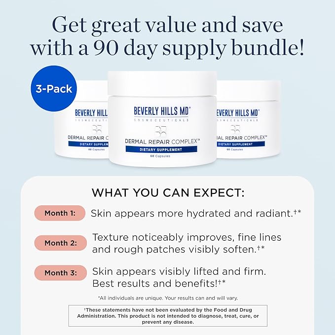 Beverly Hills MD Dermal Repair Anti-Aging Supplement - Hyaluronic Acid, Collagen, Vitamins for Smooth, Plump Skin (3)