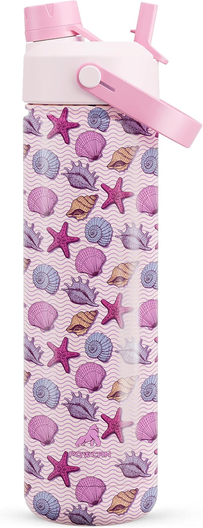 26 oz Insulated Water Bottle with 2-in-1 Straw and Spout Lid, Keep Cold 24H, Leak-Proof, Fits in Car Cup Holder, Stainless Steel Water Bottle for Sports, Trip, Gym, and School (Seashell Sonata)