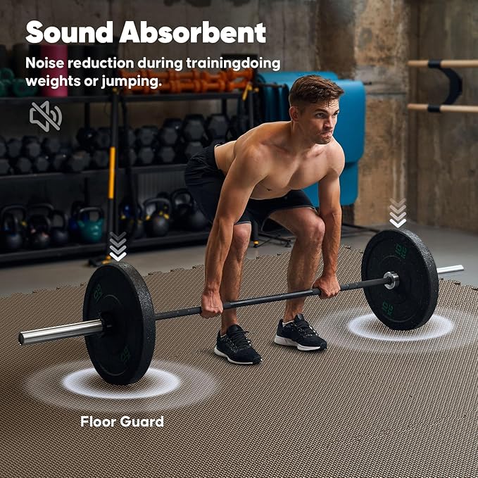 Home Gym Mat, Puzzle Exercise Mat, EVA Interlocking Foam Floor Tiles for Home Workout Equipment and Kids' Play Areas - Blue, 24 in x 24 in x ½ in - (Brown, 32 Pack(128 SQ FT))