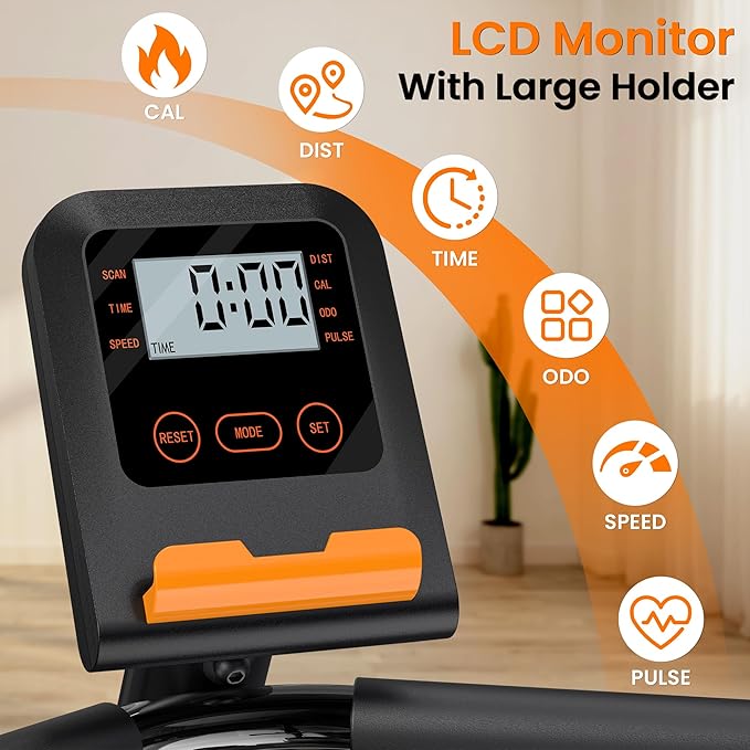 - 【Monitor Progress with Every Pedal】Stay motivated with real-time stats displayed on the clear LCD screen: track speed, time, distance, calories, odometer, and heart rate. Integrated pulse sensors on the handles provide accurate heart rate readings. This exercise bike offers the insights you need to stay on track, whether for daily movement or serious fitness goals.