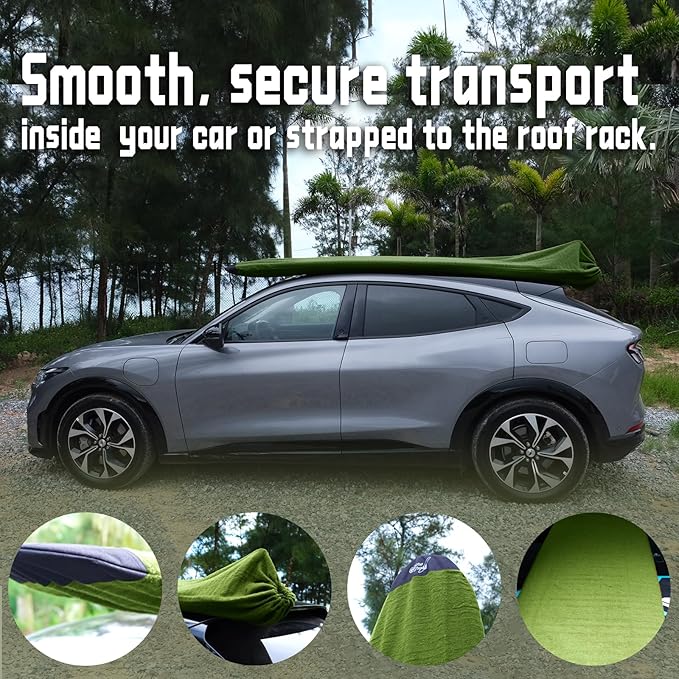- 📐Easy to Use & Portable - Midweight, ultra-soft stretch knit fabric with a reinforced padded nose panel, offering a snug fit for your longboard as a Surfboard Day Bag—whether inside car or strapped to the roof rack.