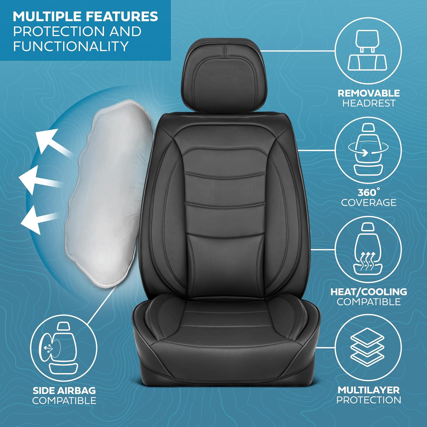 Elite Edition Faux Leather Seat Covers for Cars, Trucks, & SUV - 2 Black Car Seat Covers for Front Seats - Universal Fit Car Accessories Automotive Interior Cover Protector for Most Vehicles