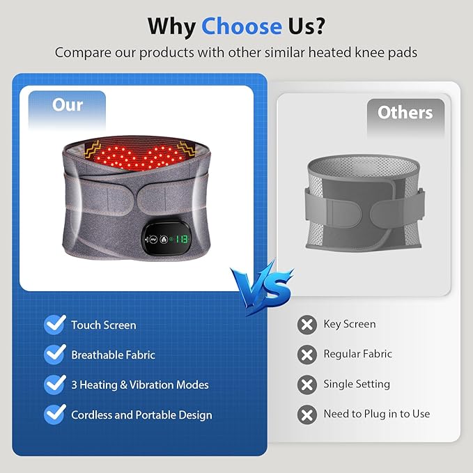 - 【Long-lasting Power and Portability】Lower back massager equipped a 5000mAh battery provides up to 6 hours of continuous use on a single charge, and the Type-C charging port ensures a quick 2-hour charge. It is compact and lightweight (9.6 pounds), making heating pad for back easy to carry around and suitable for travel, office use, or at home.