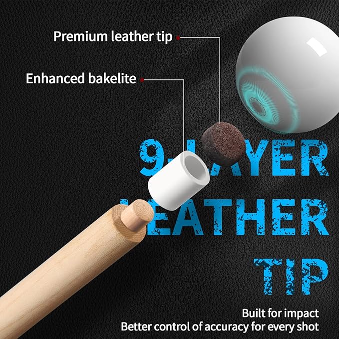 - Premium 4-Layer Leather Tip: Multi-pressed premium leather withstands daily play. Delivers consistent feedback on every shot. Perfect upgrade for pool cues