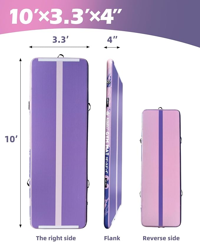 - 【Scope of Application】AISUNSS inflatable air gymnastics mat has good elasticity, can reduce impact power and provide support. It can be used for a variety of training such as gymnastics, dance, etc. It is also suitable for a variety of scenes such as home, stadium, etc. It is an optimal choice for various activities.