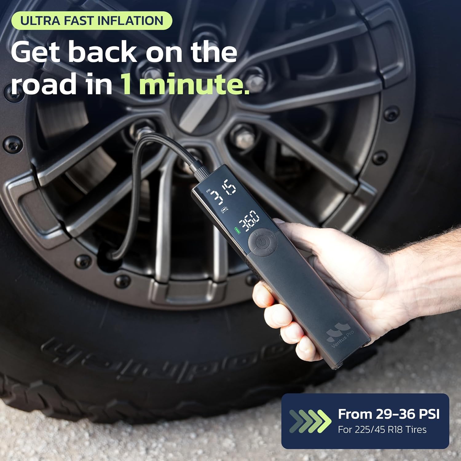 - ULTRA-FAST INFLATION IN 1 MINUTE – This powerful 150 PSI tire pump inflates car, motorcycle, SUV tires in just 60 seconds. Also perfect for Pick up trucks, off-road vehicles, sedans, trailers, and e-bikes when plugged into the included 12V car outlet for continuous power.