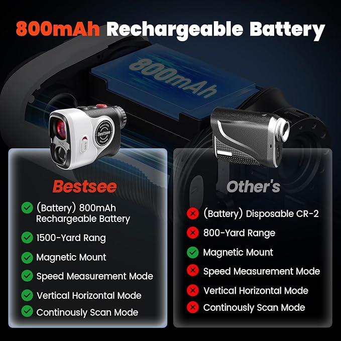 - 【Fast Flag Lock with Vibration Alert】Bestsee Golf rangefinder: Instant target confirmation! Bestsee advanced Flagpole Locking System delivers a clear vibration alert when locked (up to 350 yds for flags, 1500 yds general). Achieves lock in just 0.3 seconds. Ensures tournament-level accuracy on windy courses or in dense terrain. No more guesswork! Perfectly lock onto flagsticks on the course or track distant targets while hunting. Essential gear for golfers and outdoor enthusiasts.
