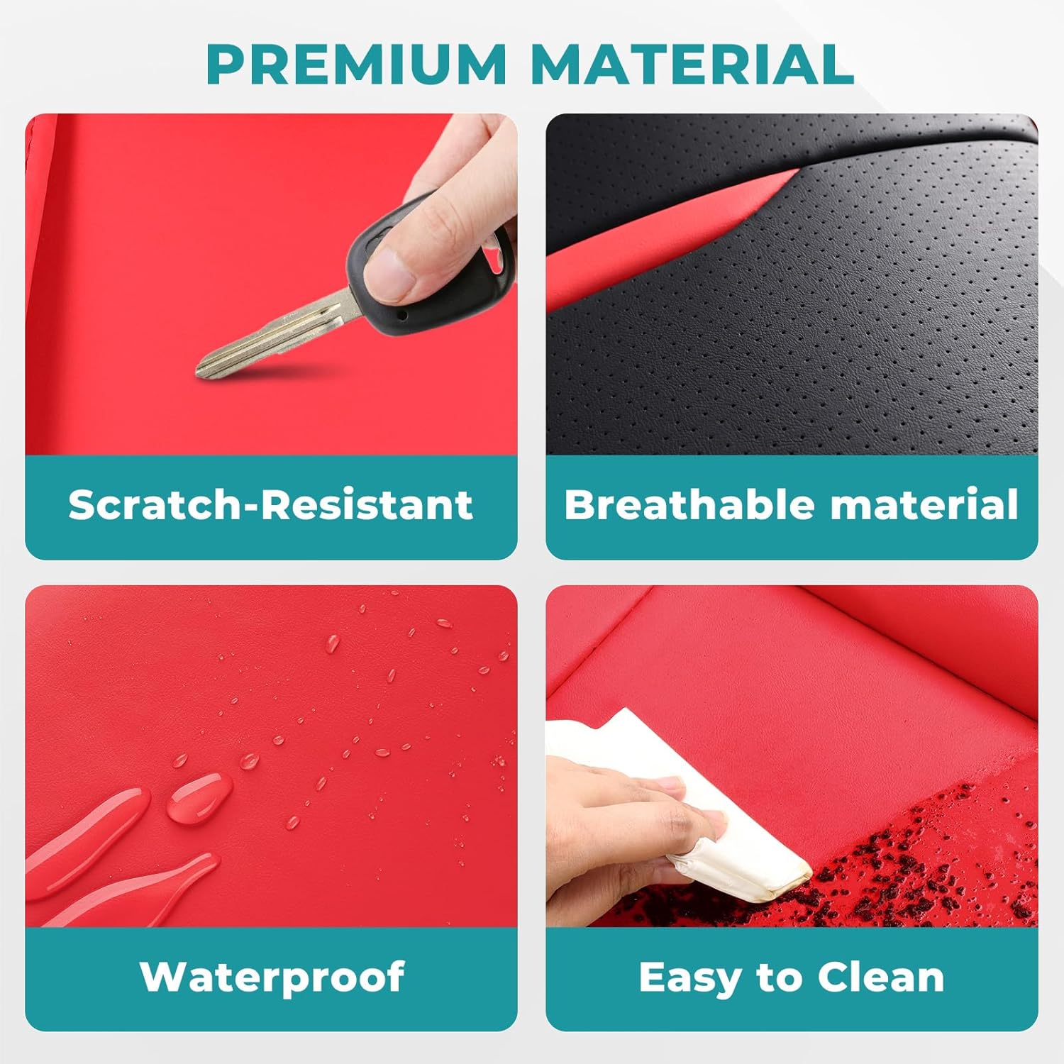 Car Seat Covers Full Set - Universal Seat Covers for Cars SUV Truck – Faux Leather Automotive Seat Covers, Breathable & Waterproof Front and Rear Seat Protectors, Fit for Most Cars-Redblack