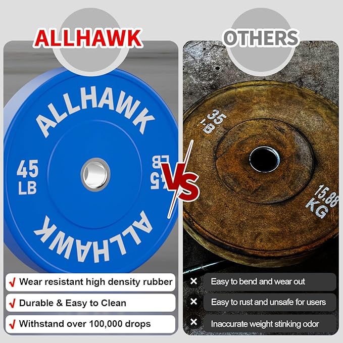 - Quality Assurance: ALLHAWK olympic barbell weights are non-toxic, anti-corrosive, and wear-resistant. Includes a 3-year warranty. Minimal odor and easy to clean, perfect for home use.