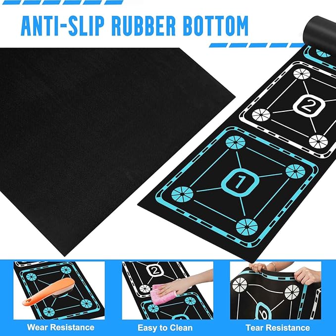 - Agility Ladder Set for Footwork Training: The speed ladder featuring 10 clearly numbered rungs and a high-contrast black & blue non-slip surface. Its 15ft/450cm long and 13.39in/34cm wide,provide enough space to agility training. Dial in your speed, enhance coordination, build explosive power, or improve lateral quickness – easily customize drills for any fitness goal, from beginner fundamentals to elite athletic conditioning.