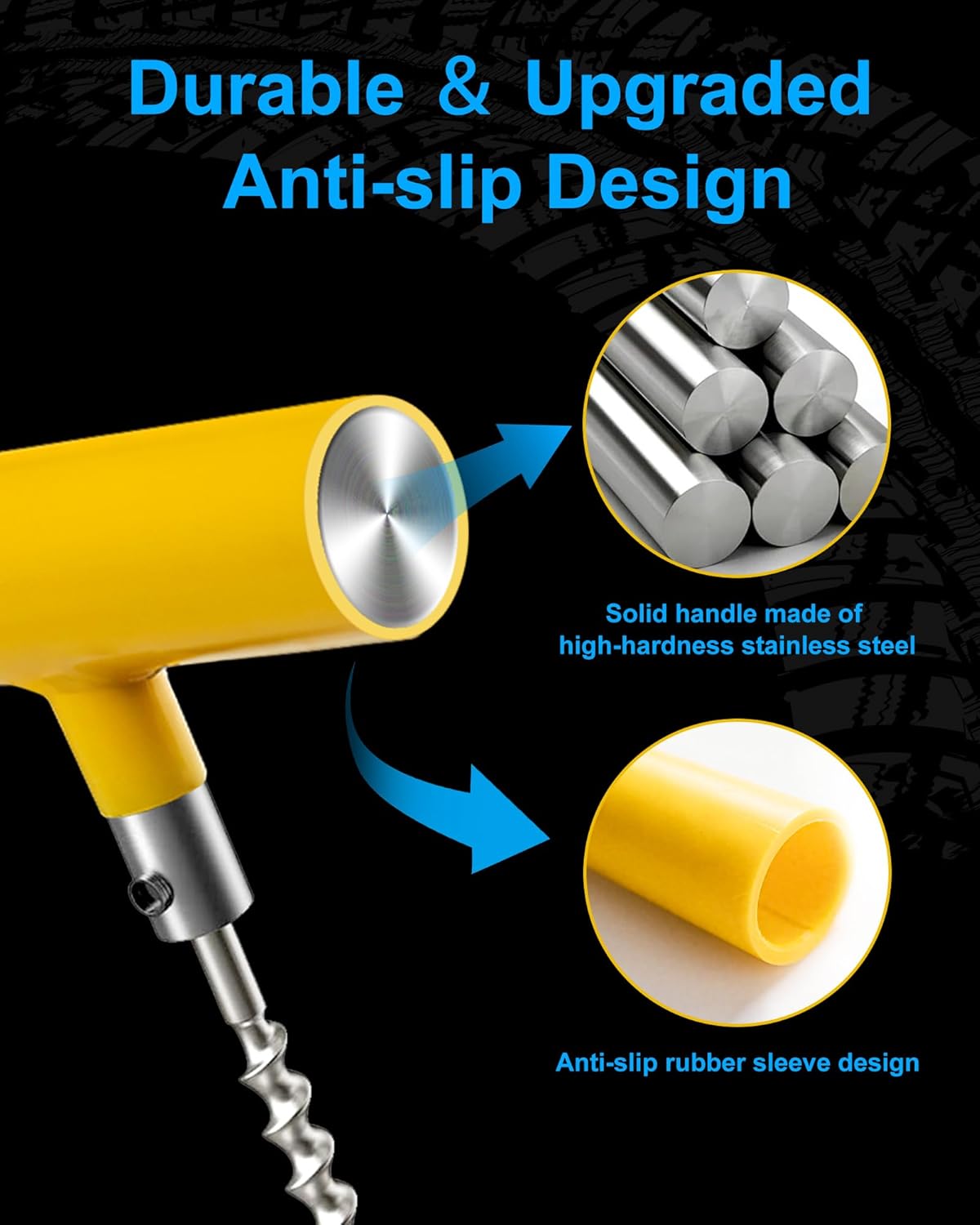 - Durable & Upgraded Anti-slip Handles: Solid T-handle made of high-quality steel and securely wrapped in rubber - designed for a secure grip and better control during tire repairs