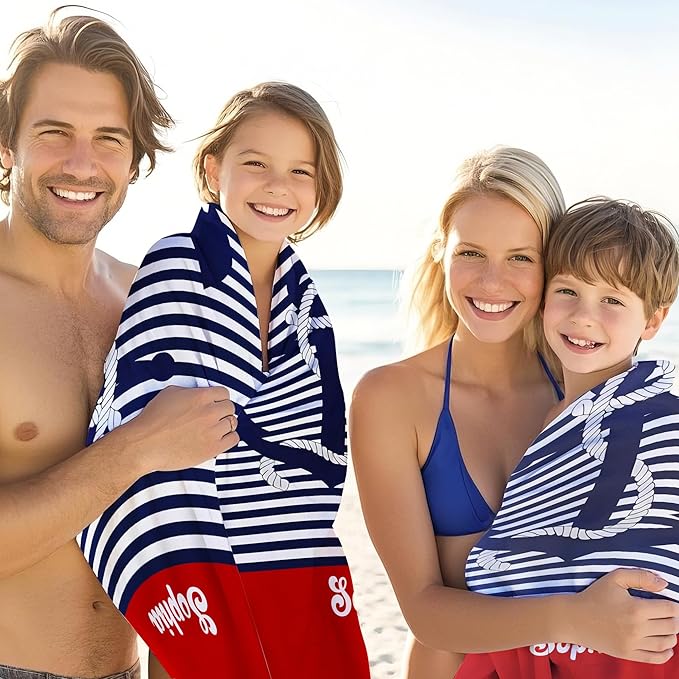 - Perfect Gift for Water Lovers: Whether it's for birthdays, summer vacations, Easter,Mother's Day,or just because, this personalized beach towel makes a delightful gift for swimmers, beach lovers, and sunshine chasers. Surprise your kids, partner, families, or friends with a unique and practical present they'll use all season long