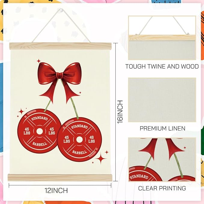 Gym Bow Dumbbell Motivational Posters College Dorm Posters Gifts for Girls Friends Gym Flag Wall Art Decor Sign for Home Gym Bedroom Office