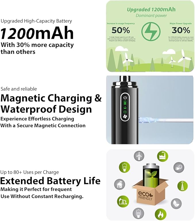 - [IP67 Waterproof & Smart Tech]: Fully submersible with 1200mAh magnetic-charging battery, auto-shutoff timer, and overheat protection for safe operation.