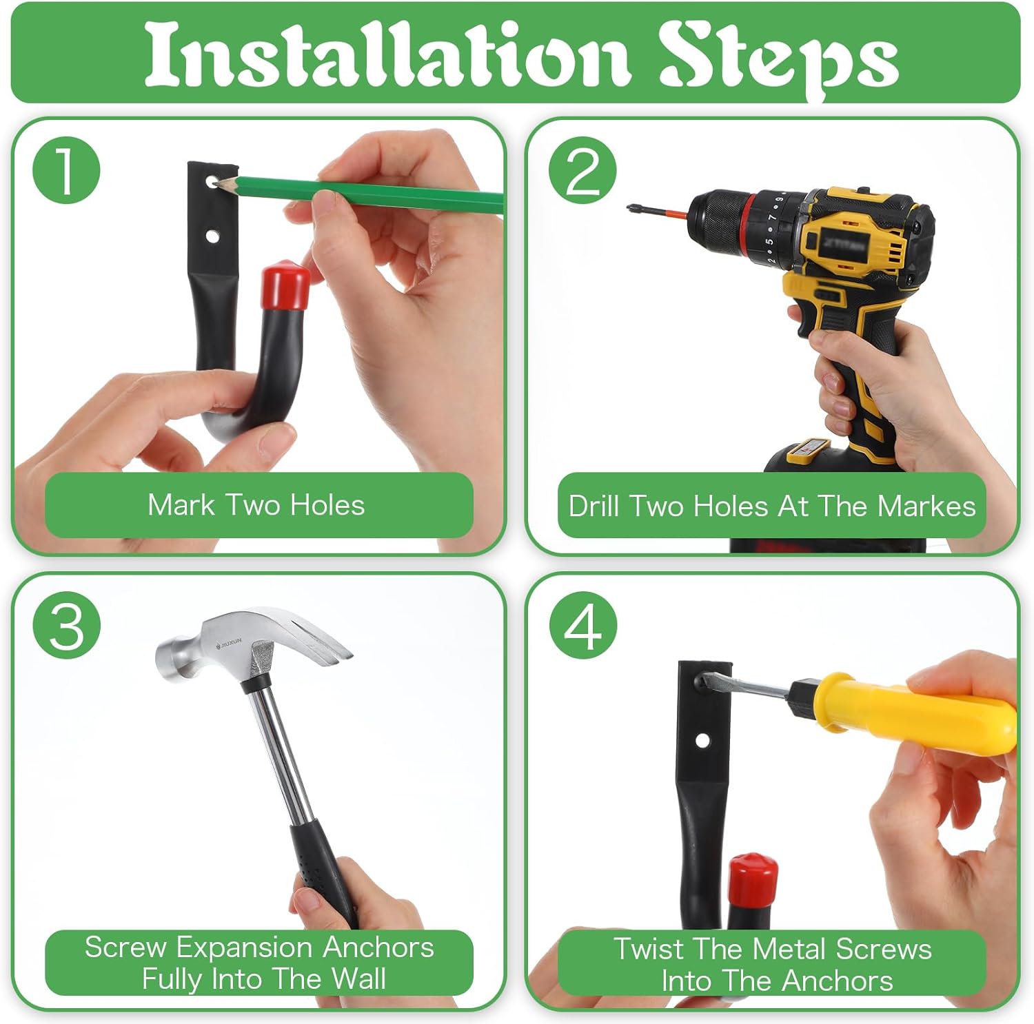 - 【Easy Wall Installation】 Installation is straightforward with included screws and anchors suitable for drywall, wood, brick, or concrete. Simply drill pilot holes (recommended for hard surfaces), secure with the provided hardware, and mount. This simple process enables quick setup for efficient garage or workshop organization