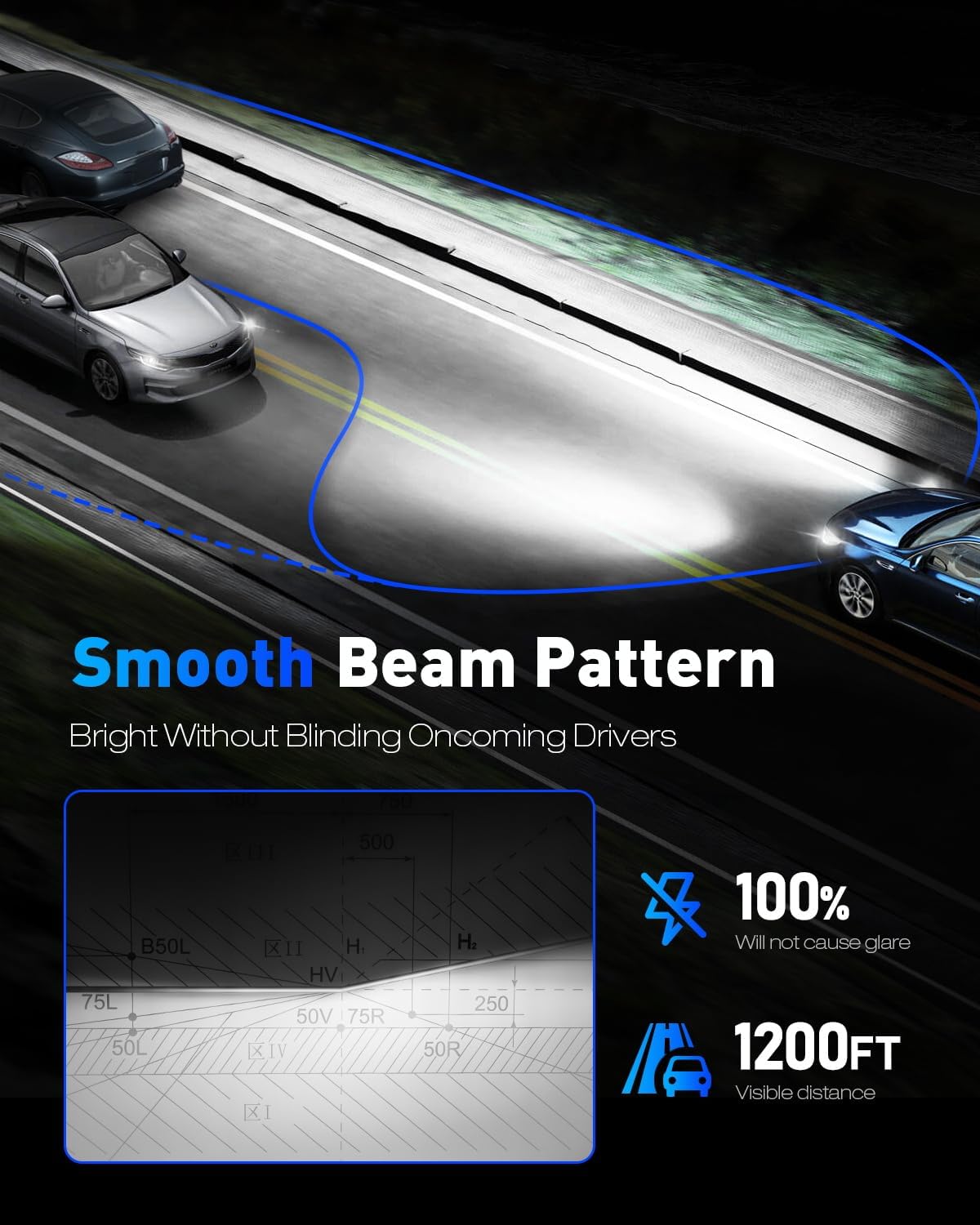 - 【Precision Beam Control】With sharp beam boundaries, our unique pattern lights your path without causing glare for oncoming drivers. It balances your needs and others' comfort for all - around safety