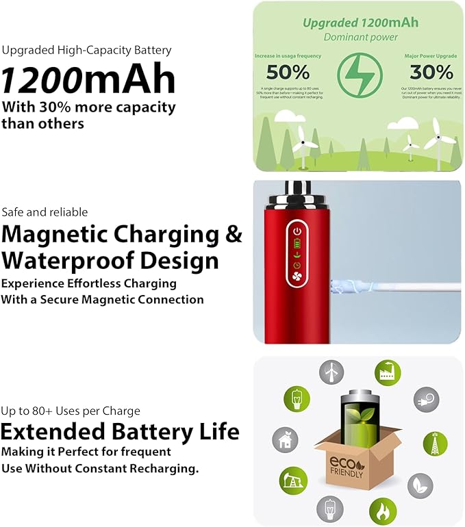 - [IP67 Waterproof & Smart Tech]: Fully submersible with 1200mAh magnetic-charging battery, auto-shutoff timer, and overheat protection for safe operation.