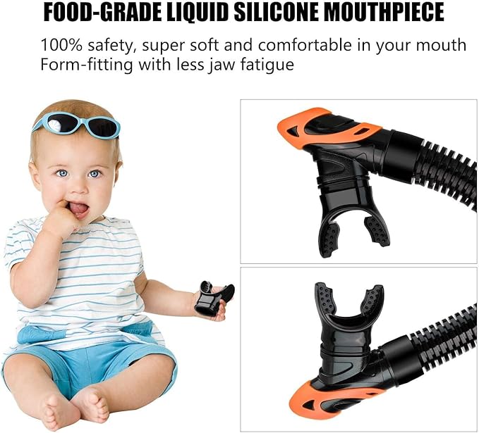 - Advanced top dry valve and splash guard: Aegend Dry snorkel profiled “paddle” dry top automatically closes when submerged, not allowing water entry. Even waves crash overhead, the splash-guard will prevent water from coming into the snorkel. Unlike the float ball valve which gets lodged easily by small sands or kinds of stuff, our new design valve won't be stuck, which give you comfortably breath.