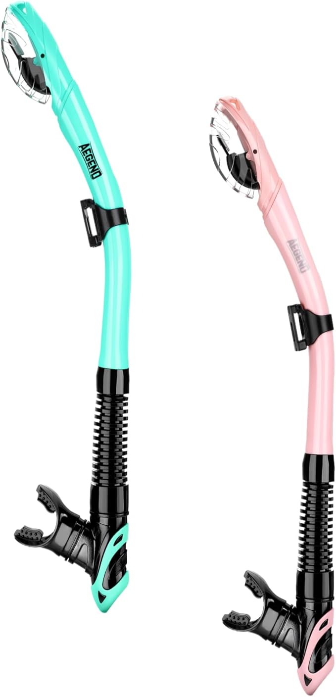 • Advanced top dry valve and splash guard: Aegend Dry snorkel profiled “paddle” dry top automatically closes when submerged, not allowing water entry. Even waves crash overhead, the splash-guard will prevent water from coming into the snorkel. Unlike the float ball valve which gets lodged easily by small sands or kinds of stuff, our new design valve won't be stuck, which give you comfortably breath.