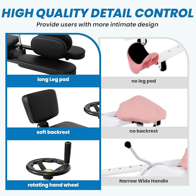 - Gradual Angle Adjust:By simply turning the handwheel, you can make gradual adjustments from 0 to 240 degrees. This functionality is suitable for every individual, whether you're a novice beginning your flexibility pursuit or an experienced professional. You can even unwind and listen to music while stretching.