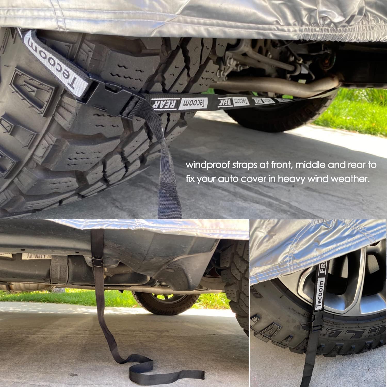 - All Weather Protection: Tecoom car covers is perfect for indoor and outdoor use, no matter the sun or the cold weather, protects your car safe from UV rays, snow, rain, frost, sand,dust, leaves, branches, birds dropping.