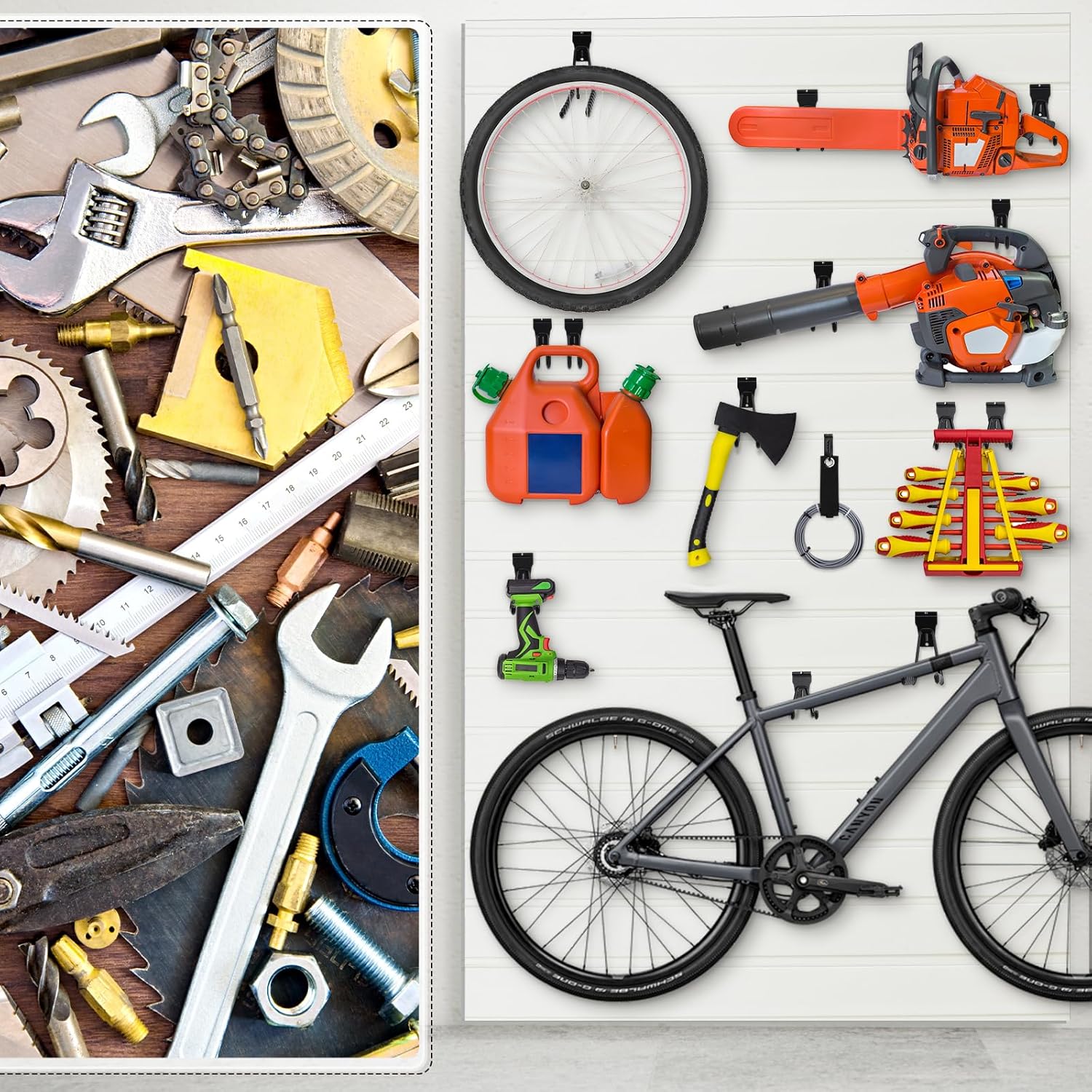 - Versatile Uses: this heavy duty Slat Wall hooks and storage straps offers wide applications; Perfect for garages, retail spaces, and more, they are ideal for hanging garage tools, sports equipment, gardening tools, and various household items