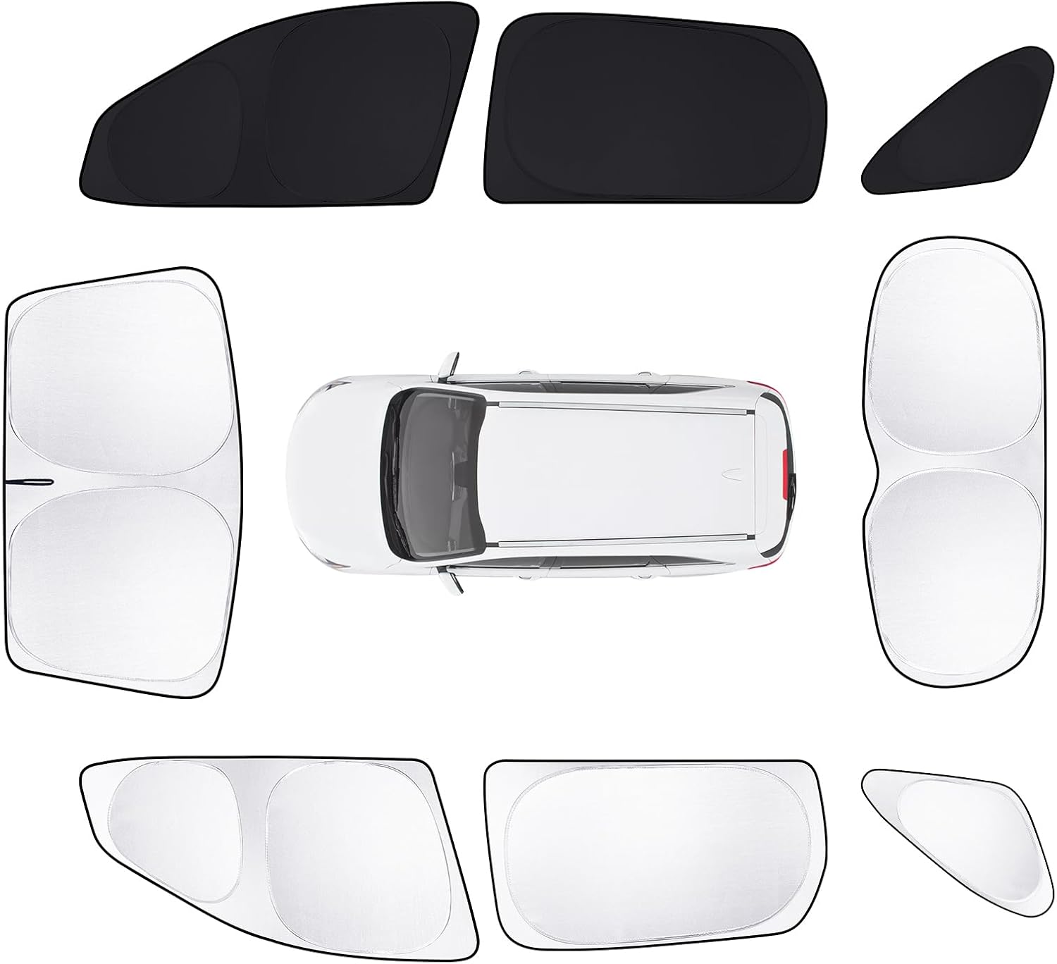 - All-new upgrade: Each sun visor is covered with a silver metal aluminum layer on the outside and black on the inside. Compared with the all-black sun visor, the silver sun visor can better lower the temperature inside the car. Meanwhile, when you need to use the black sun visor, just flip it over for use