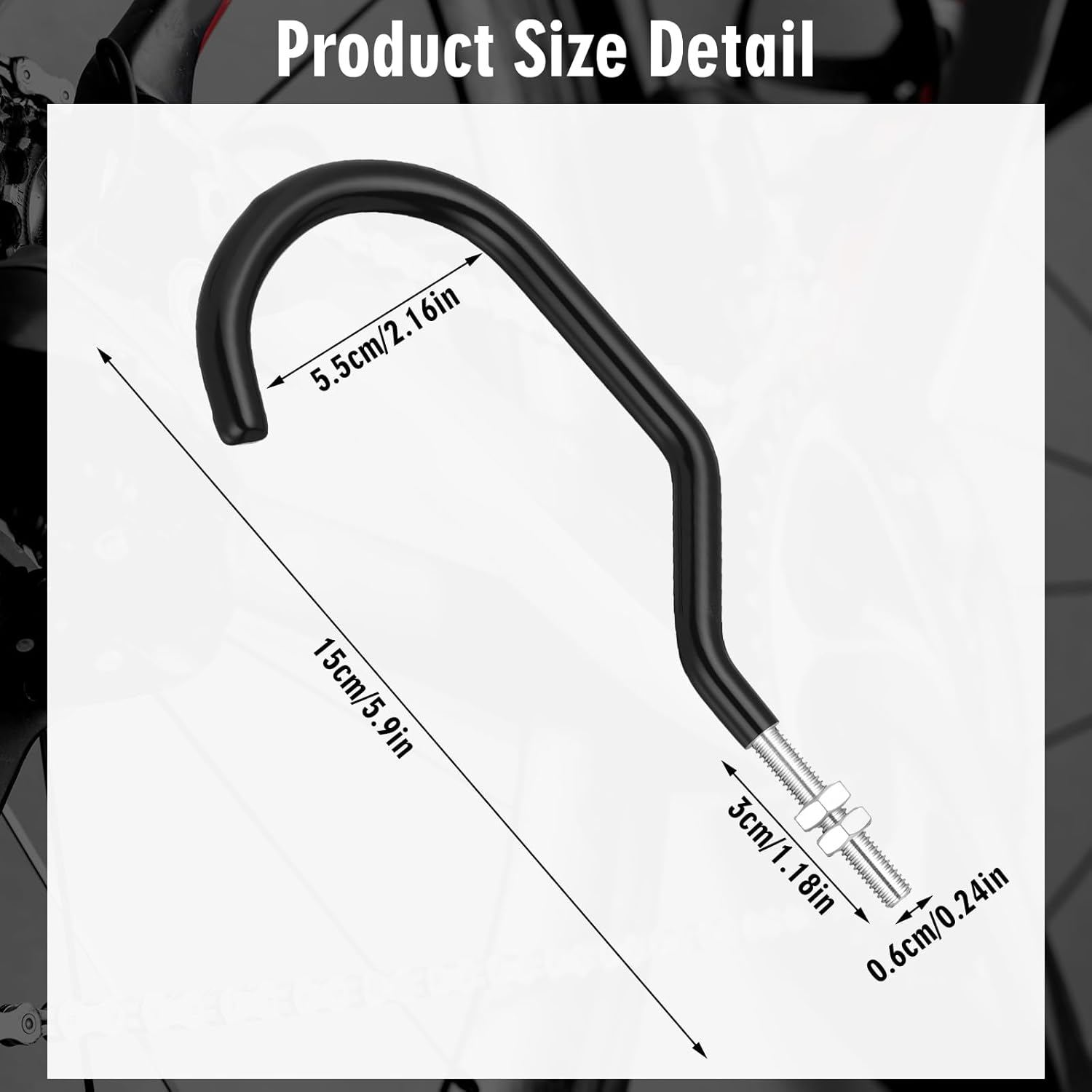 - Built to Last: crafted from robust 9 mm steel rod, these 4 pack bike hooks offer unmatched strength and durability; The inner width of the bend is about 2.17 inches; Designed to support bicycles of various sizes and weights, they're ideal for both home garages and commercial storage