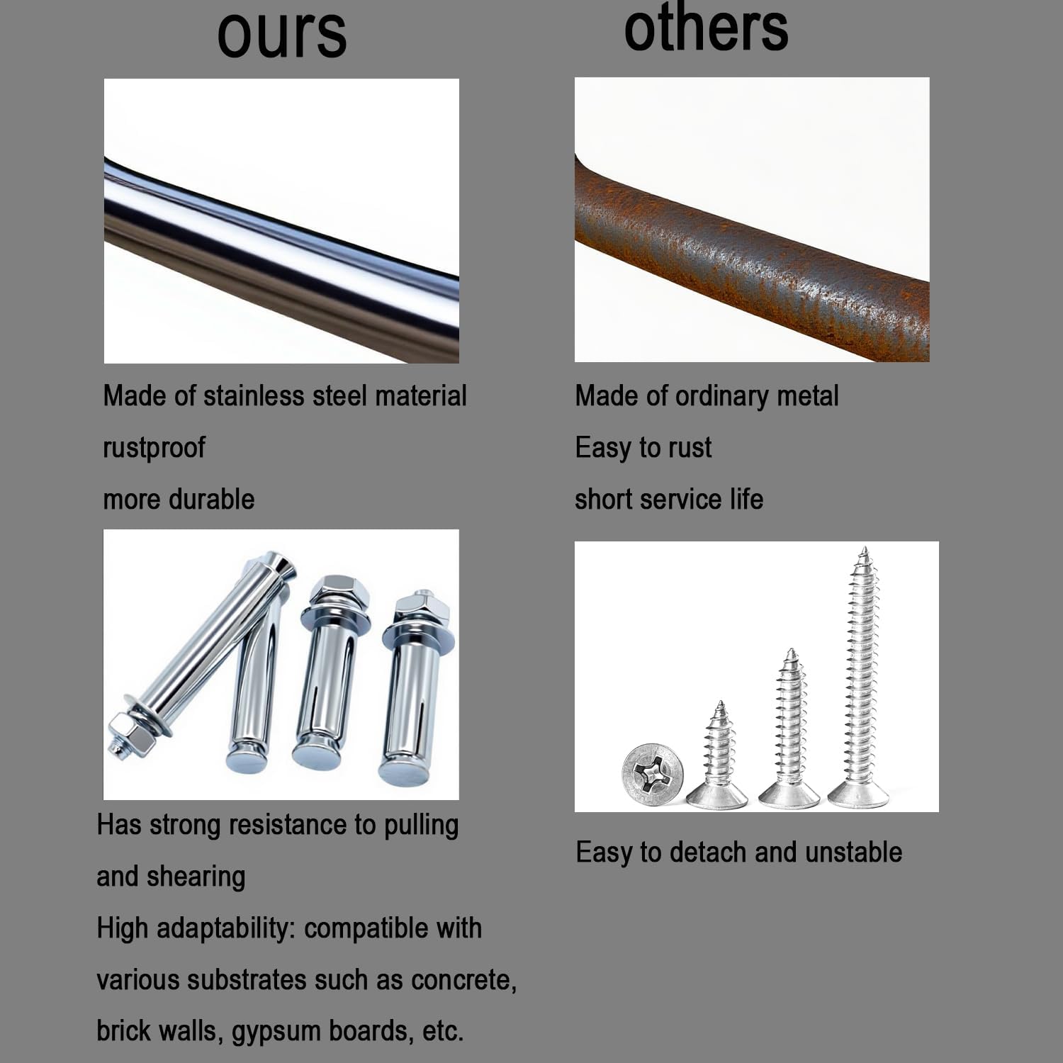 - EASY TO USE AND INSTALLATION - Hooks is a set of 6 wall mount hooks, each utility hook with at least 1 expansion bolts and 2 pieces screws .Tap wall anchors on the spot you marked and fasten the screw by using a screwdriver, mount easily on hardwood, stud walls, block or brick, brick/concrete wall. Comes with all the necessary hardware and instructions for a quick and straightforward wall mount installation