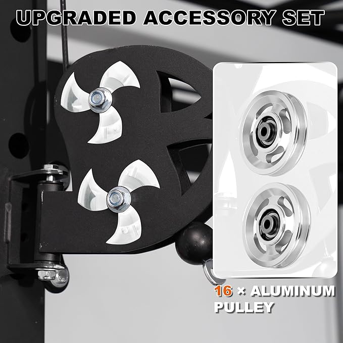 - All-in-One Training System: Equipped with a dual cable crossover system, multi-grip pull-up bar, and landmine attachment, this rack supports over 80 full-body exercises, including squats, bench presses, lat pulldowns, rows, bicep curls, and more. Whether for strength training, bodybuilding, or functional workouts, P67 covers it all.