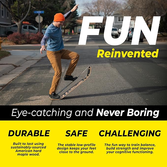 - SAFE FOR ALL AGES & SKILL LEVELS: Designed with a stable, low-profile slackline board system, this wooden balance board keeps you close to the ground for safer training. With no metal or moving parts, it's an ideal kids balance board and perfect for adults in any home workout routine.