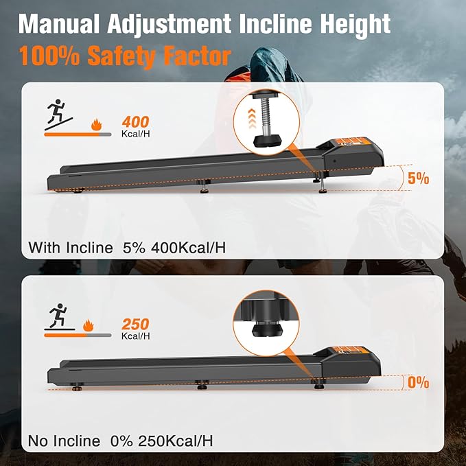 - 【Quiet&Strong Power】Walking treadmill pad with incline has an 2.5HP quiet motor, the noise level of just 55dB. Whether you're exercising in the morning or relaxing late at night, you won't disturb your family or neighbours.
