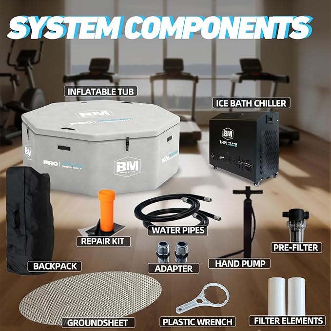 - Complete Recovery System & Accessories: Includes a high‑pressure pump, groundsheet, PTFE tape, piping, seals, wrench, adapter, quick connectors, plus a replaceable filter. Everything you need for fast setup, ongoing maintenance, and a seamless cold‑or‑warm plunge experience