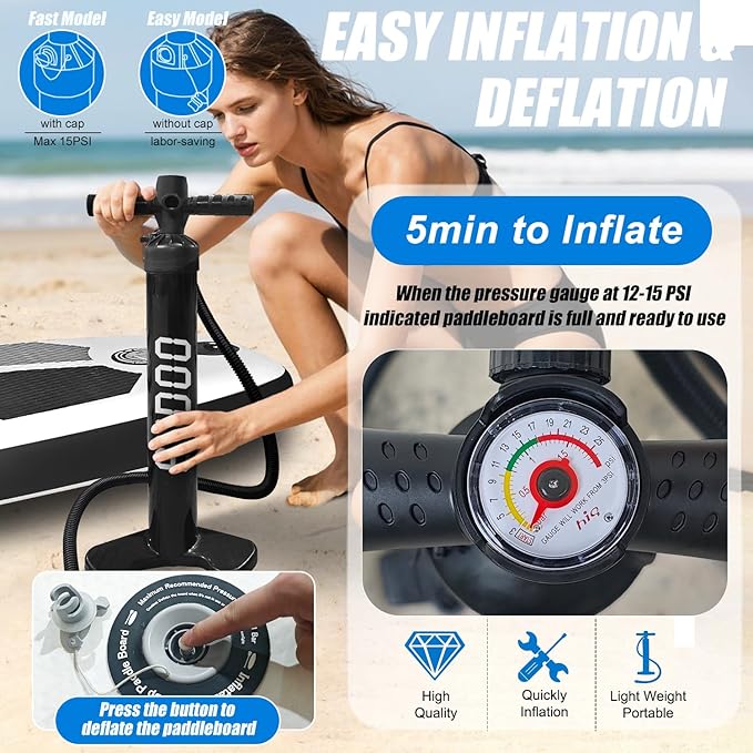 - Complete Kit: Includes SUP, kayak seat, adjustable paddle, pump, coil leash, repair kit, and backpack. Quick 10-minute inflation/deflation with leak-proof Boston valve.