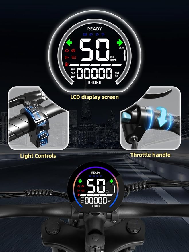 - 【Elevate Your Ride】 Our mid mounted shock delivers smoother bumps absorption, enhanced stability, and efficient power transfer.Our bike also features excellent dual front suspension with key, integrated LCD display, bright front and rear lights, and sturdy rear rack all combine to ensure every ride is both comfortable and safe.