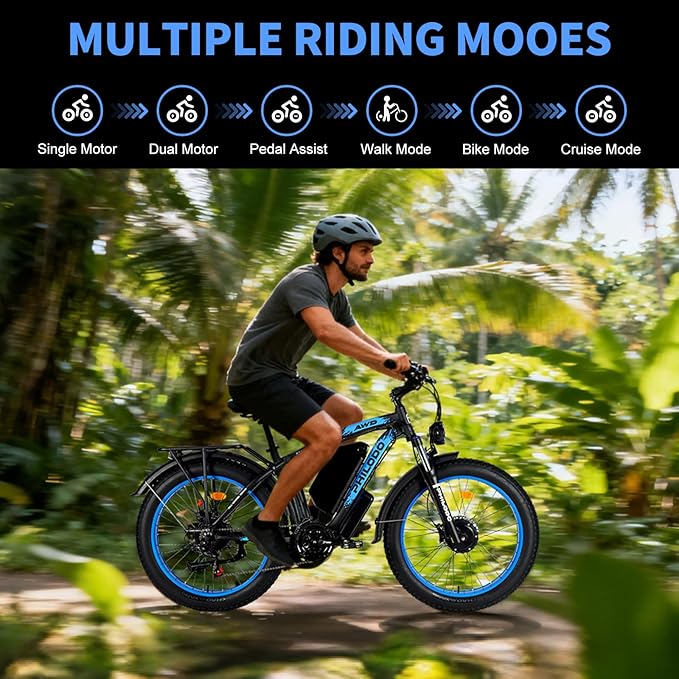 PHILODO 5000W Dual Motor Ebikes for Adults, 60V 26AH Battery Electric Bike, 26x4 Fat Tires for All Terrain Dirt Bike with 21-Speed Gear Electric Mountain Bike Electric Bicycle