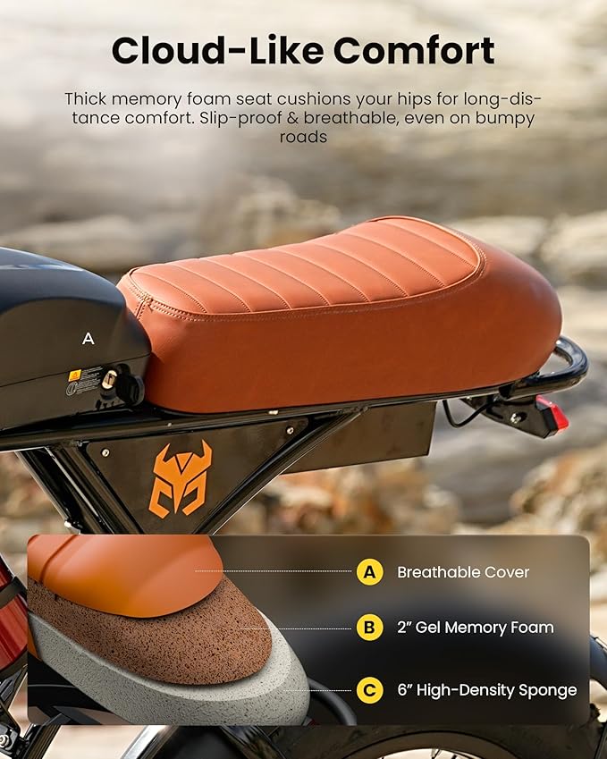 - All-Terrain Dominator-Run Pro electric Bicycle equips with 20"x4.0" puncture-proof tires (3X wear-resistant layers + drainage grooves+TSC, 5,000-mile tested) for extreme abrasion resistance.Full shock absorption and a triple-layer widened seat with cloud-like softness for maximum comfort and minimized fatigue.